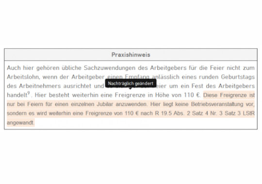 Sofern nach dem Drucktermin, aufgrund neuer Rechtsprechung oder einer Rückfrage im Vortrag eine Ergänzung notwendig sein sollte, arbeiten wir diese in den bisherigen Beitrag ein. Sie erkennen die nachträglichen Änderungen an der orangen Markierung im Text.